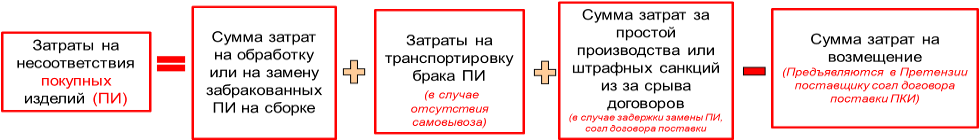 - Формула для учета затрат на несоответствующую продукцию на этапе входного контроля