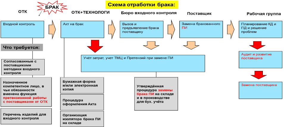 - Схема отработки несоответствующей продукции на стадии входного контроля и отчетность