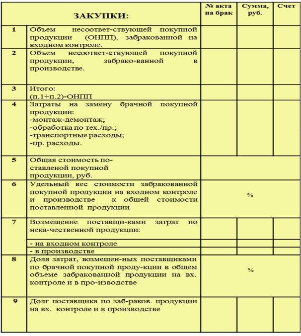 Все необходимые данные для аналитика собираются бухгалтерией в формате управленческой отчетности и предоставляются в Дирекцию по качеству для подготовки Анализа со стороны руководства. Пример бланка такого отчета приведен на Рис.3.